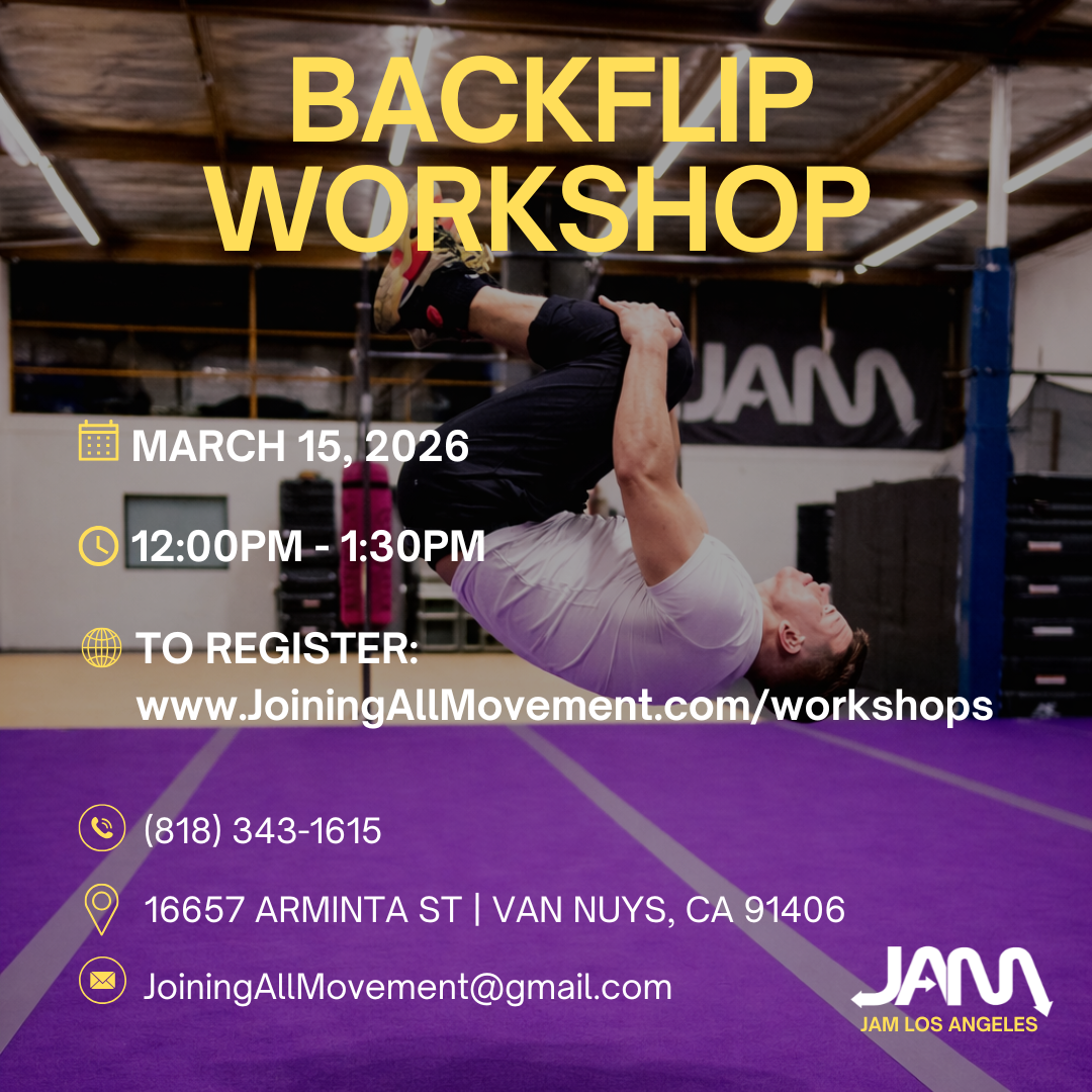 Students will learn the fundamentals of executing a backflip in this 1 Day Intensive